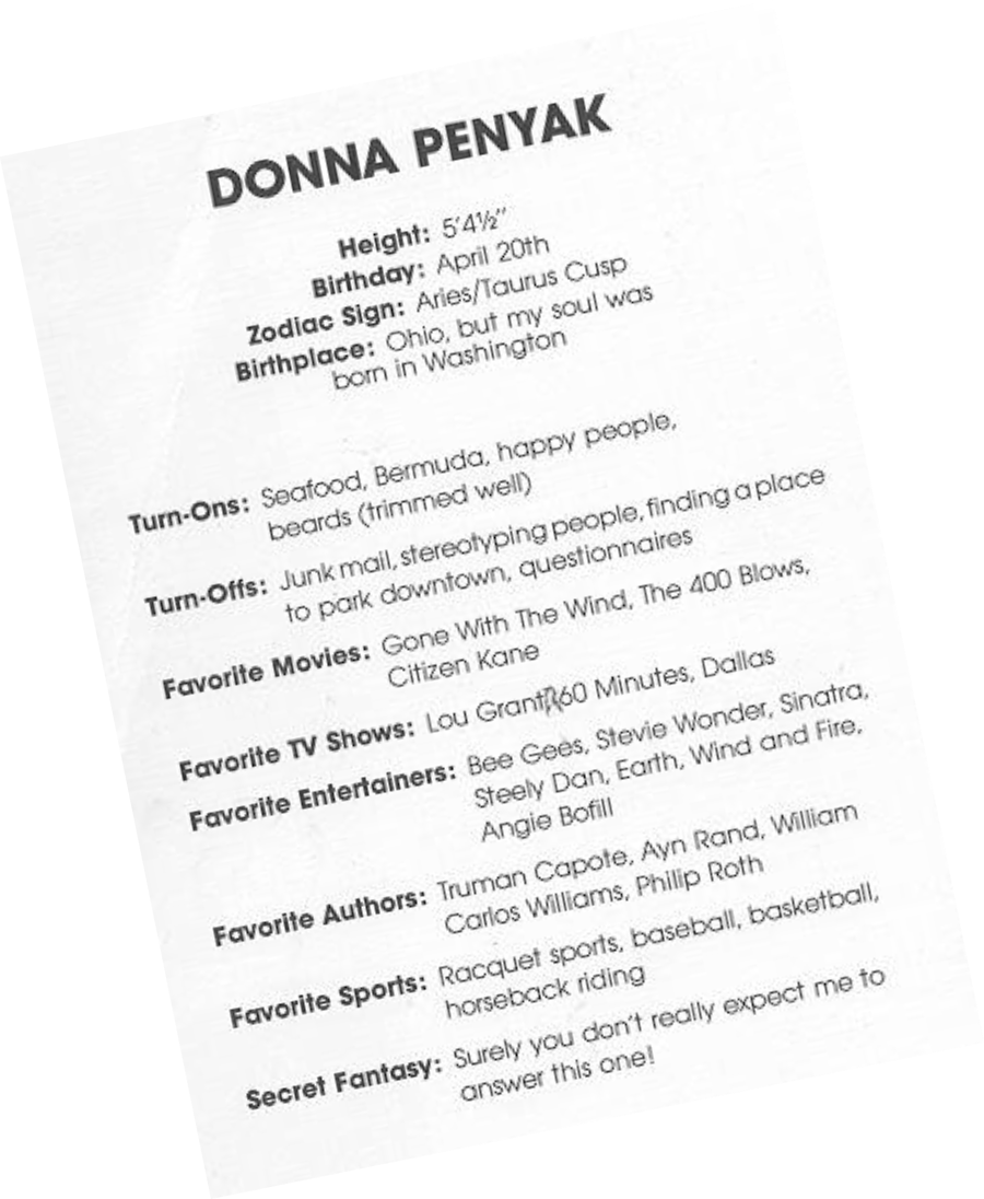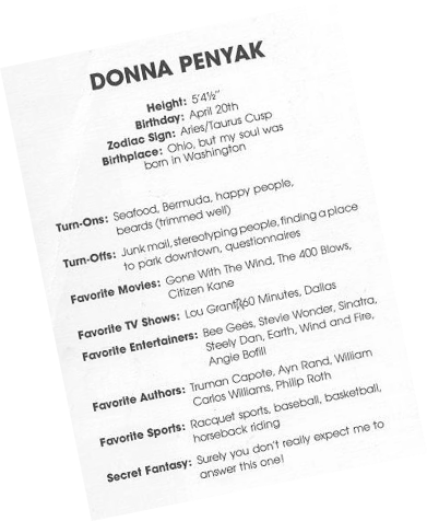 Donna was Donnie’s partner every morning. With a strong news background,Donna kept Washingtonians up to date. Her personality and reaction to Donniepaid off and Donnie & Donna were one of those morning teams that you had to check out.Donna went on to do hourly newscast on the CBS Radio Network out of New York.Donna passed away in 2011. She will be missed by all who knew her...especially her KYS Family.