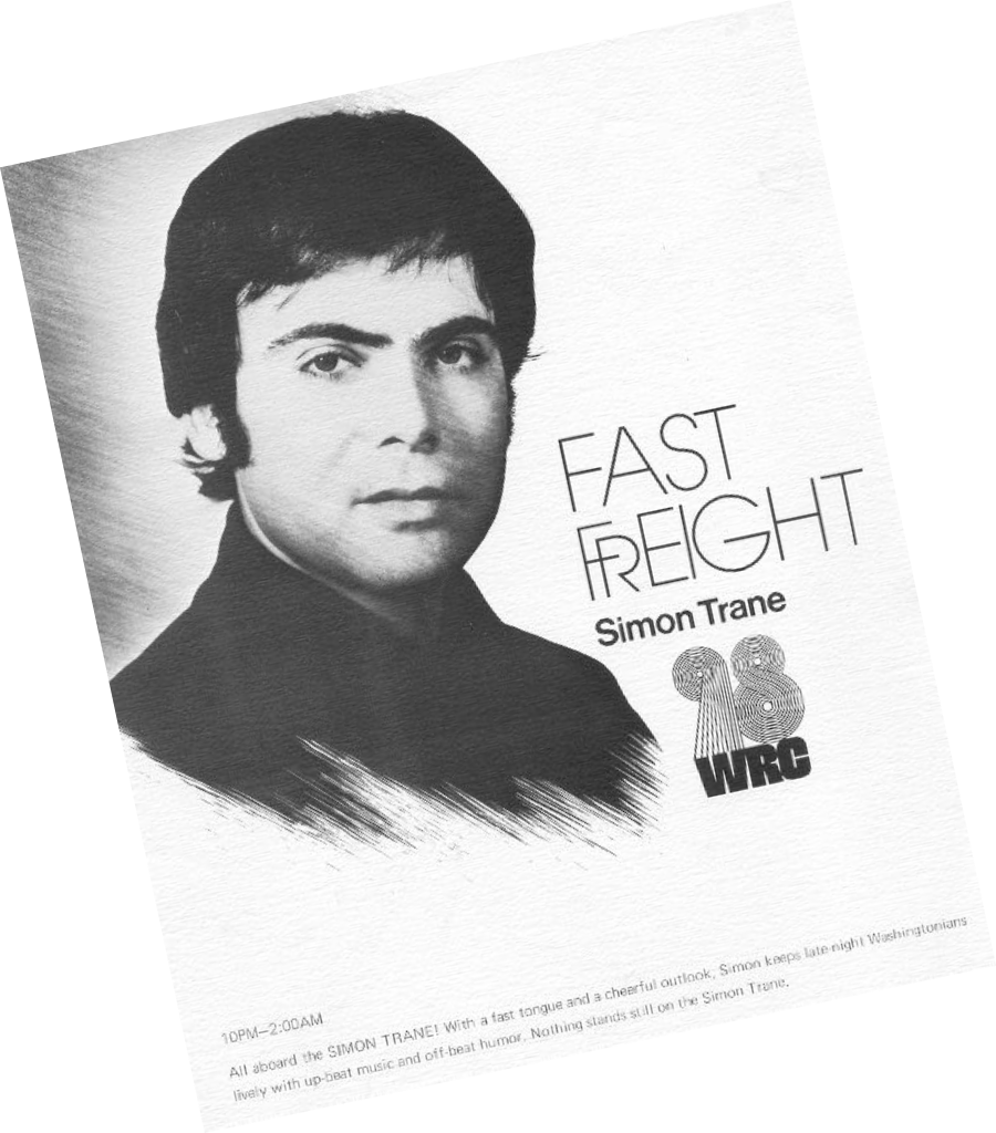 "ALL ABOARD THE SIMON TRANE!"That was the call nightly on the Great 98.Simon came to the DC area from some major market stations(KRUX in Phoenix, WQXI in Atlanta, KILT in Houston).He originally was in the 10pm-2am time slotand did afternoon drive after Bobby McGee left.Phone lines in the Nation's Capitol were always tiedup when it was time for some luckylistener to get “Simon-ized”